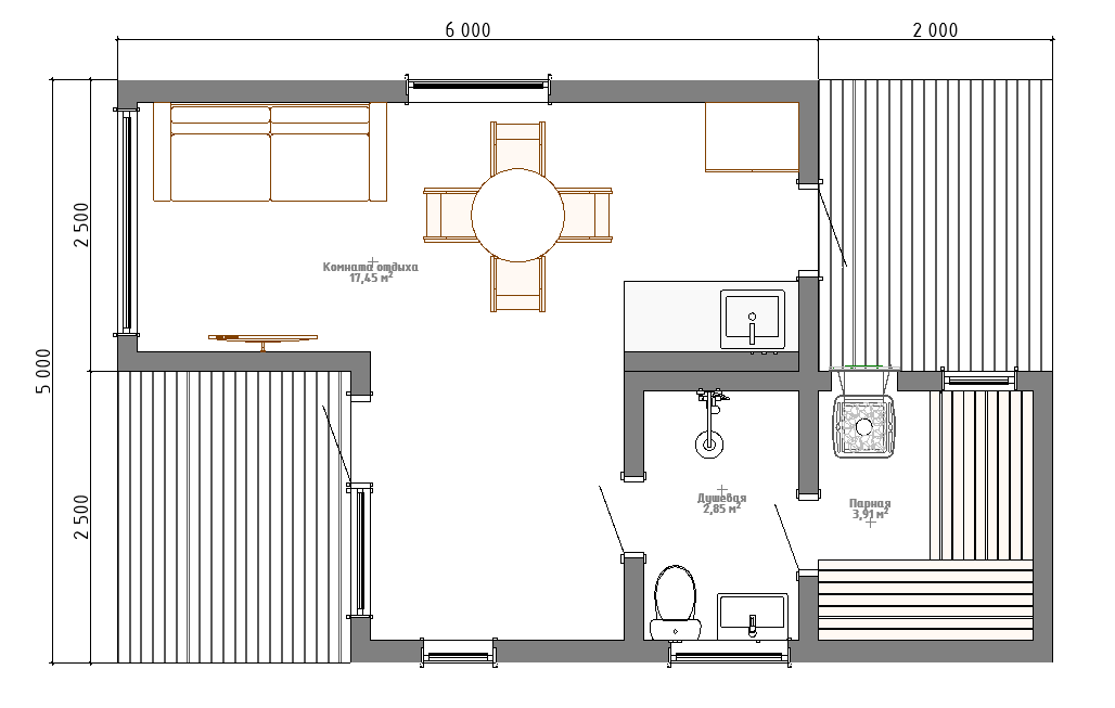 Главная страница » Модульные бани » Баня «Z» 5х6